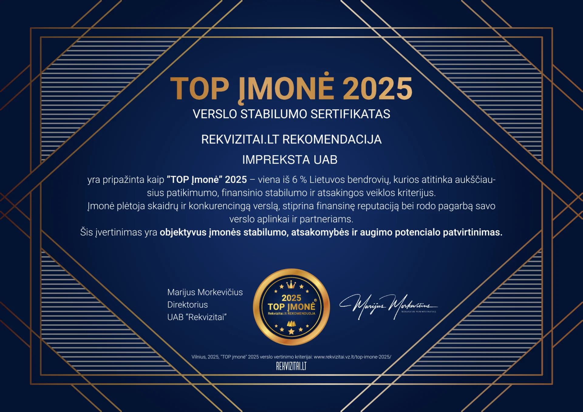 UAB IMPREKSTA – TOP įmonė Lietuvoje 2025 m.